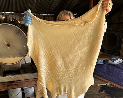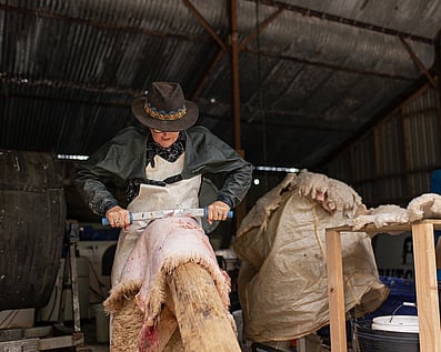 At Flock, we are relearning the lost art and skill of transforming sheep skin into a soft yet durable leather through our on-farm micro-tannery.